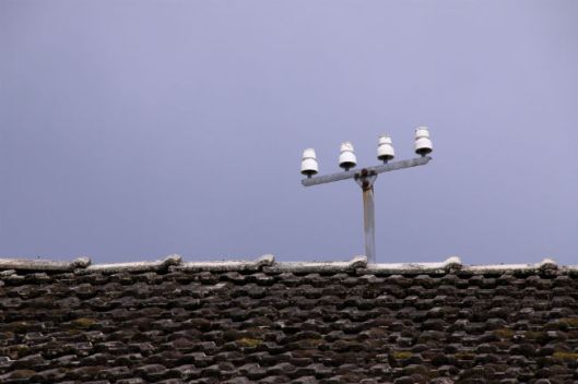 Igår köpte vi fyra gotlandskaniner, med avsikt att ha en egen genbanksuppsättning här ute. Följdaktligen bygger Rejn burar i ladugården idag. Gör illa sig under tiden gör hon också. Daniel å sin sida har klättrat upp efter gavelfasaden för att kleta på lite färg innan vädret blir sämre igen. Det känns att hösten är på gång nu. Känslan är diffus, men den finns helt klart där.