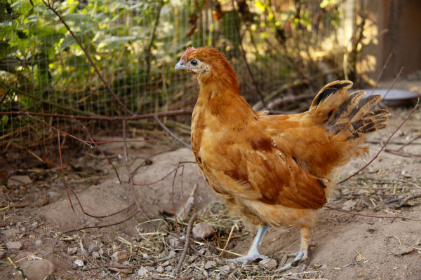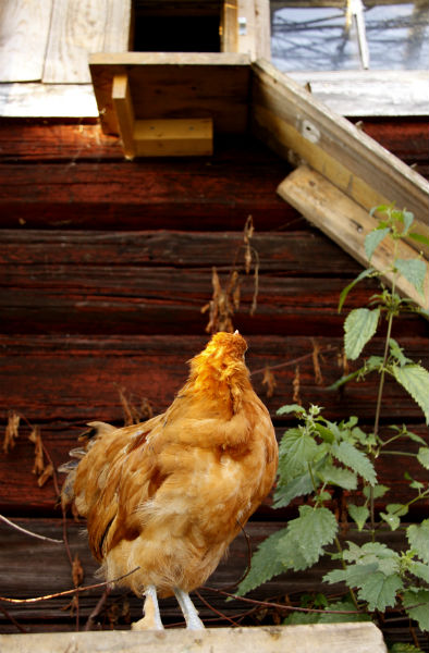 När alla andra hönor och tuppar gått in för kvällen, då vankar den här herren fram och tillbaka under luckan, oförmögen att ta sig in. Det här är en tupp som helt enkelt inte verkar lita på sin egen förmåga.