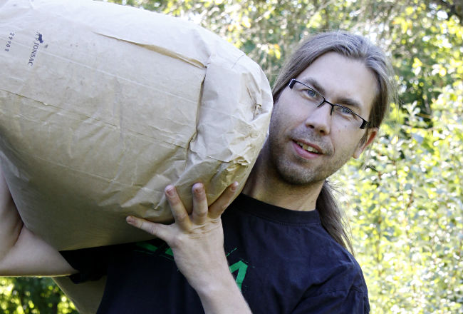 En väldig massa mat går det, nu när vi har så mycket fjäderfän. Årets kycklingar och ällingar är på tillväxt och kräver massor av energi. Vi köper korn- och havrekrossblandning av en bonde i grannbyn till bra pris. Enda problemet med det är att vårt område har selenfattiga jordar, så mat från trakten kräver selentillskott. Vi köper en flytande variant och blandar i vattnet.