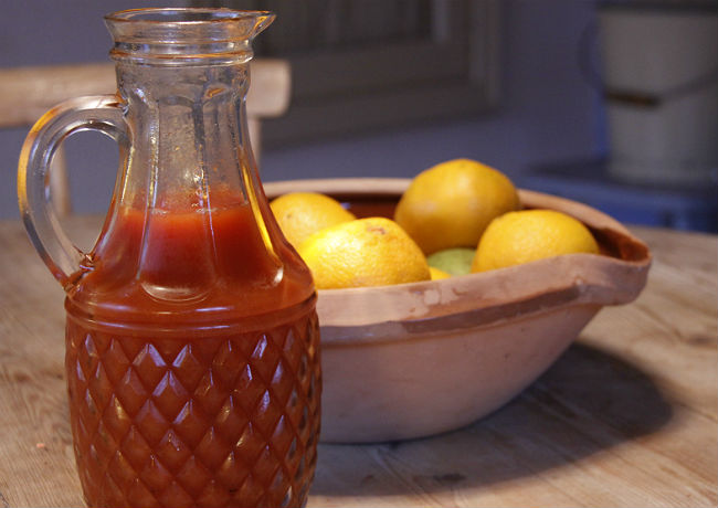 Här var det fler hemgjorda presenter (ligger i botten på korgen i gårdagens inlägg): Hemkryddat örtsalt. Det har stått i större klumpar sedan i somras i väntan på att någon skulle förbarma sig, så nu minns vi tyvärr inte längre vad det är i. Selleri vet vi, men i övrigt är det svårare. Persilja kanske och med största sannolikhet Timjan från kryddlandet. Kanske var där något mera också. Det är troligt. Varför tror man att en minns sådant här? Några av alla burkar med rom från sommarens kafé blev lagom att hälla det i.