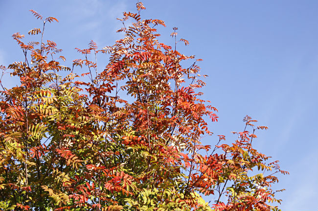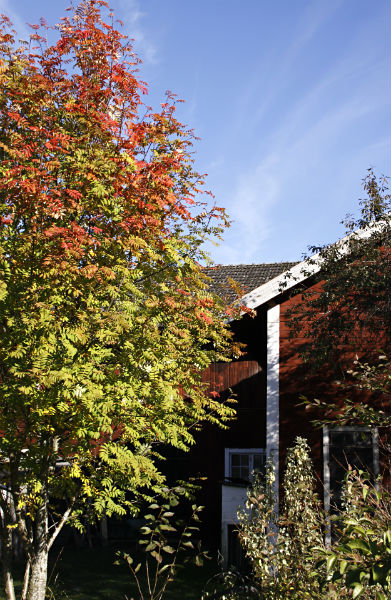 Daniel gillar inte rönnar. Vi har ingen aning om varför, men han brukar hänvisa till rönnen på gården i barndomen. Ingen vet vad det trädet har för brott på sitt samvete, men något måste det väl vara, med tanke på vilket dekorativt bladverk en rönn kan ha. Daniel har, trots sin aversion, inte fått ta bort just det här trädet, som just nu skiftar i vacker höstskrud. Det blir inga rönnbär på det i år, men bladprakten verkar istället vackrare än någonsin. Andra rönnar i trakten ståtar däremot med massor av bär. Det måste väl innebära att det blir massor av snö i vinter, men lättskottat just på vår tomt, inte sant?