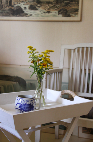 Att få krypa in i värmen, utan att känna dåligt samvete, är nummer två på vår listning av ”mysiga saker med hösten”. Tända ljus när mörkret sänker sig och krypa upp med en filt och en stor kopp te hör till. Vi dricker riktigt mycket te i det här huset. Nuförtiden, då vi inte längre har en tehandlare i familjen, så dricker vi mest neutralt ceylon-te. Det är ungefär det enda som går att hitta till överkomliga priser. När det går åt flera liter om dagen får de sorter som kostar lite mera bli undantag. När alla är hemma kommer storbaljan fram. Det är en dansk lerkanna som rymmer tre liter. Tung som stryk blir den ju förstås, men är man tebäljare så är man.